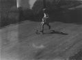 Ella Bergmann-Michel, Kind rennt mit kleinem Reifen Rueckseitig mit Bleistift signiert. Am oberen Rand unter Passepartout montiert. Literatur und Abbildung: Joerg Hoffmann, Ella Bermann-Michel, Tetrospektive Fotografie 7, Bielefeld, 1986